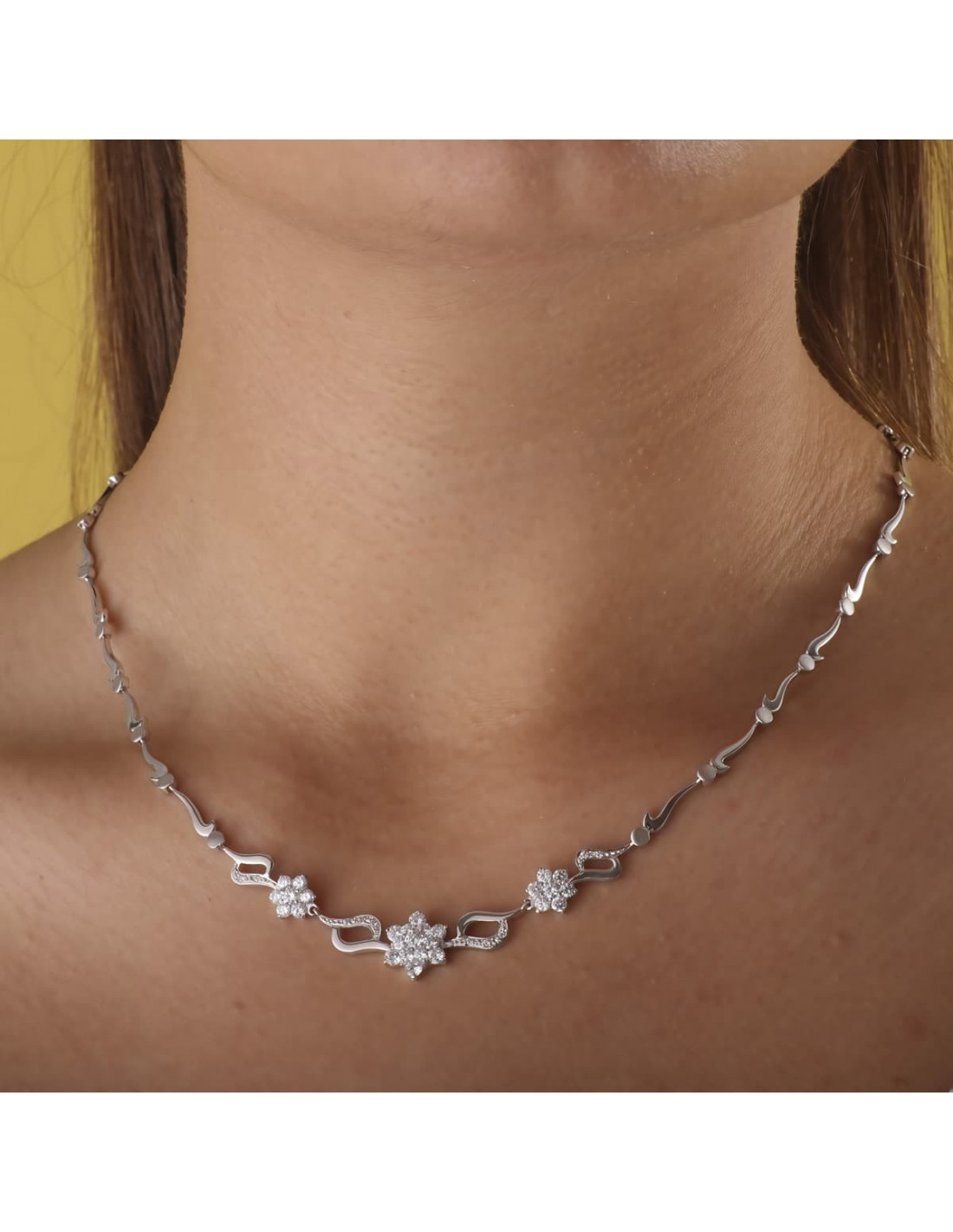 18K GARGANTILLA ORO BLANCO JUEGO NOVIA CENTRO PIÑA CIRCONITAS 45 CM MOSQUETON