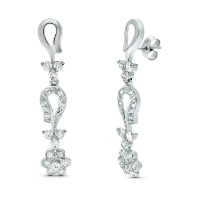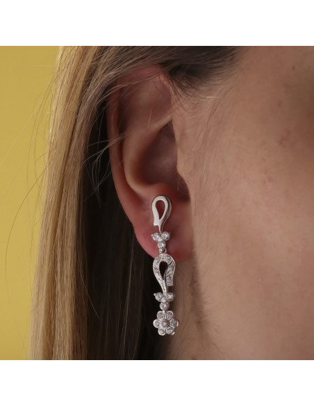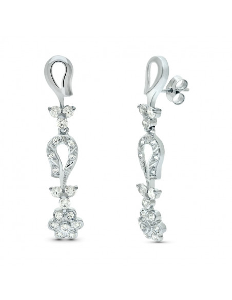 18K PENDIENTES ORO BLANCO JUEGO NOVIA ARTICULADO CIRCONITAS 42X7 MM PRESION