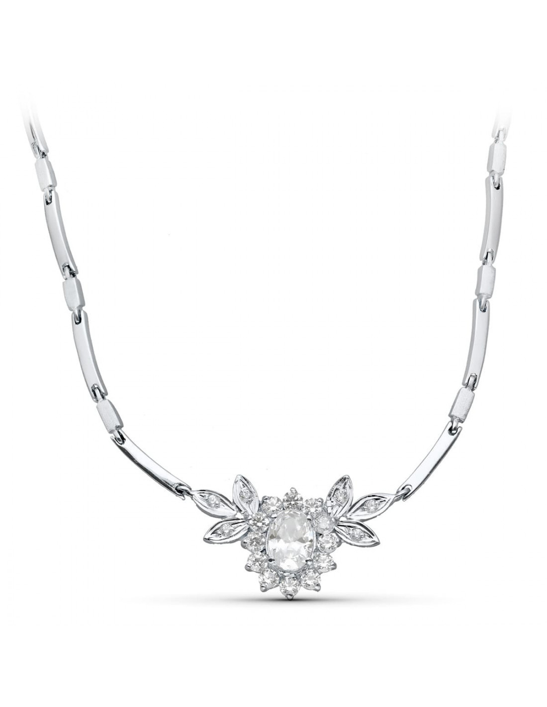 18K GARGANTILLA ORO BLANCO JUEGO NOVIA CENTRO 8X6 MM 45CM CIERRE MOSQUETON