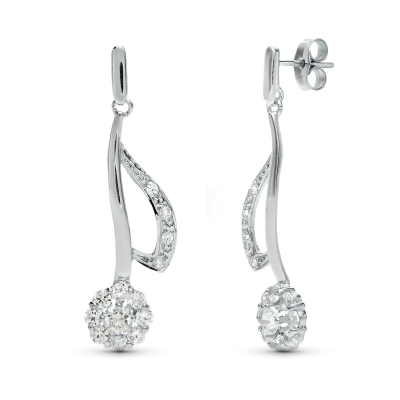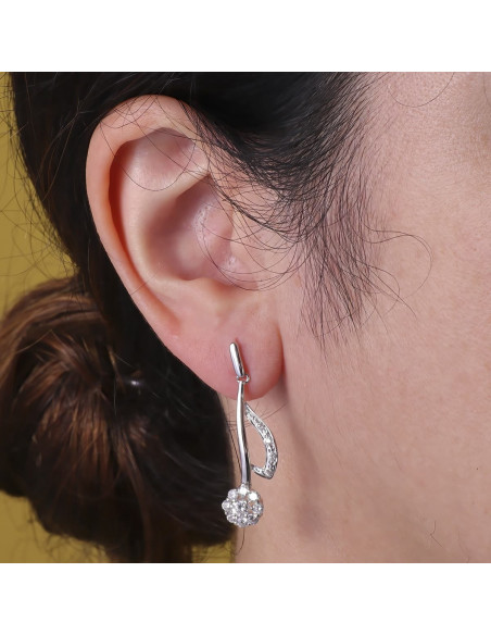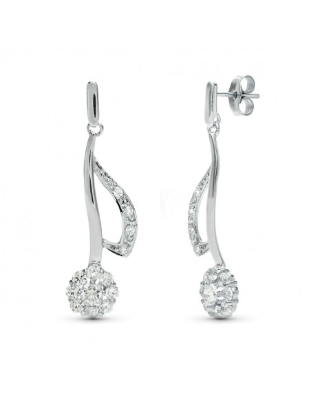 18K PENDIENTES ORO BLANCO JUEGO NOVIA LARGOS CUAJO 35X11 MM PRESION