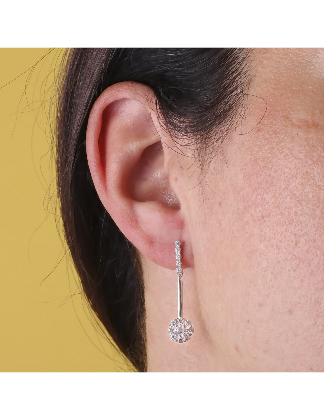 18K PENDIENTES DOS CUERPOS JUEGO DE NOVIAS CIRCONITAS 33X6 MM PRESION