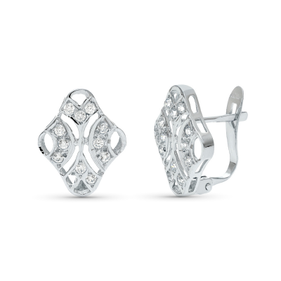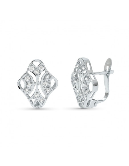18K PENDIENTES ORO BLANCO JUEGO NOVIA CIRCONITAS 15X10 MM CIERRE CATALAN