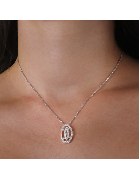 18K GARGANTILLA ORO BLANCO JUEGO DE NOVIA CIRCONITAS 45CM CENTRO 22X14 MM