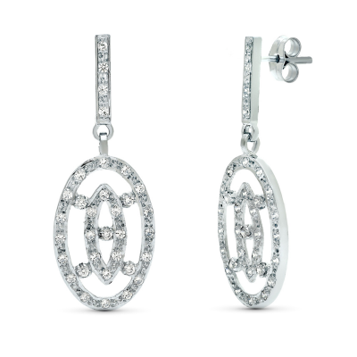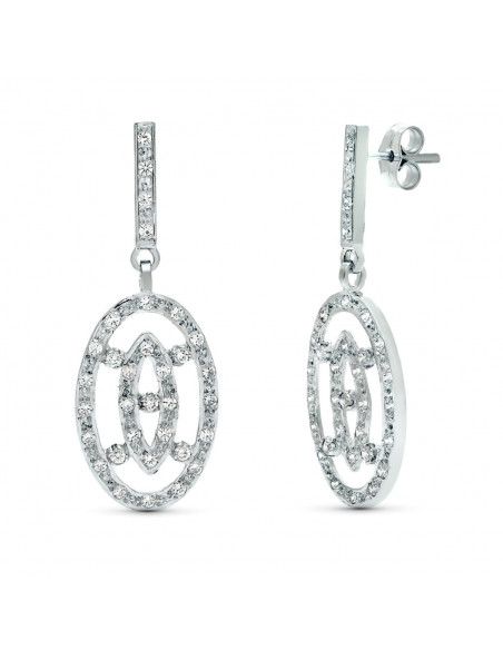 18K PENDIENTES DOS CUERPOS ORO BLANCO JUEGO NOVIA 38X14 MM PRESION