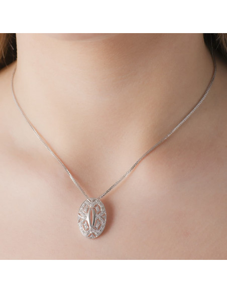 18K GARGANTILLA ORO BLANCO JUEGO NOVIA 45CM CENTRO CIRCONITAS 23X15 MM