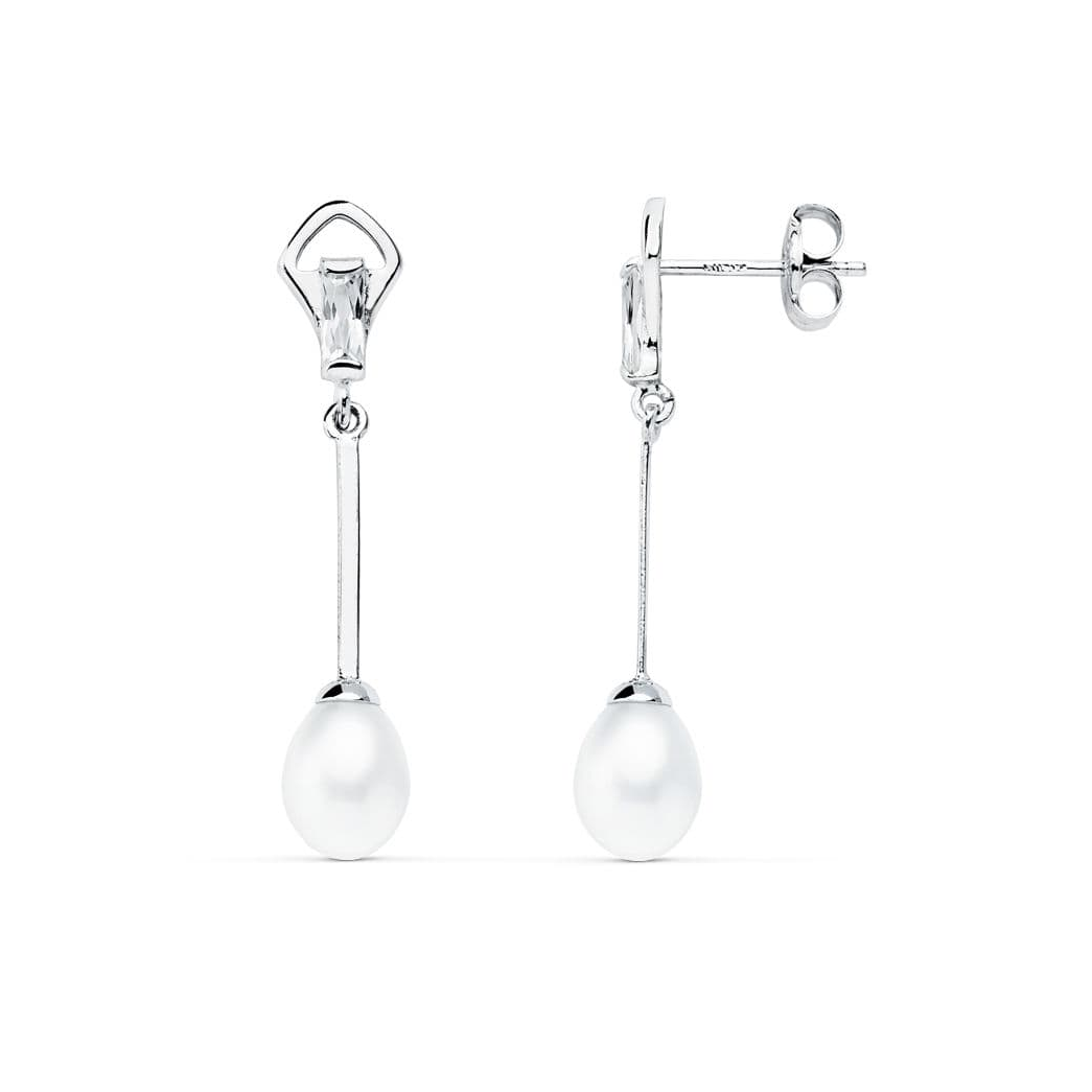 18K PENDIENTES ORO BLANCO PERLA 31X6 MM