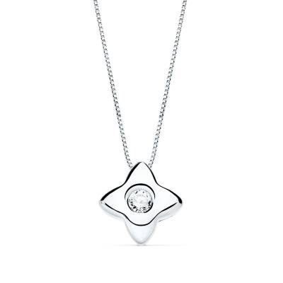 18K GARGANTILLA ORO BLANCO ESTRELLA CON DIAMANTE 0.050 QTS. G-VS2. CADENA 42 CM