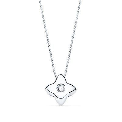 18K GARGANTILLA ORO BLANCO ESTRELLA 5X5MM DIAMANTE 0.015QT. G-VS2. CADENA 42CM