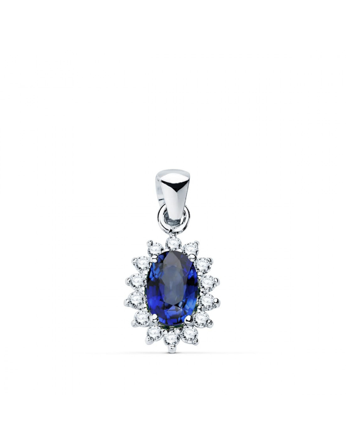 18K COLGANTE O.BLANCO ZAFIRO 0.62 QT. 14 DIAMANTES 0.14 QTS. SI-H. 10X8 MM