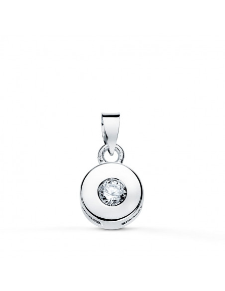 18K COLGANTE ORO BLANCO CHATON 6 MM DIAMANTE TALLA BRILLANTES 0.065 QTS SI-H