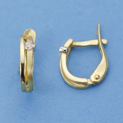 18K PENDIENTES ORO BICOLOR DIAMANTES TALLA BRILLANTE 9X3 MM