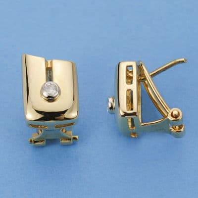 18K PENDIENTES ORO AMARILLO DIAMANTES TALLA BRILLANTE 0.10 QTS. 12X8 MM