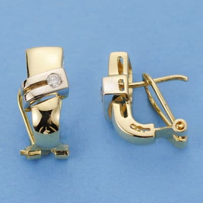 18K PENDIENTES ORO AMARILLO DIAMANTES TALLA BRILLANTE 0.08 QTS. 14X7 MM