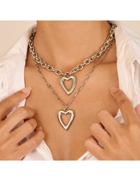 El collar largo plateado de la colección Hearts es una expresión refinada del diseño romántico reinterpretado con un enfoque actual. Esta joya para mujer se compone de una cadena de eslabones rectangulares alargados y un colgante central en forma de corazón hueco, todo en acero inoxidable con acabado plateado pulido. Su brillo sutil y líneas limpias lo convierten en un accesorio atemporal, fácil de combinar con cualquier conjunto, desde los más minimalistas hasta los más elegantes. Como parte de la propuesta de joyas contemporáneas, este collar joya mujer aporta un toque emocional a tu estilo, evocando el lenguaje del amor con modernidad y sofisticación. Ya sea como regalo significativo o como pieza clave en tu colección de joyas diarias, este collar largo plateado destaca por su ligereza visual, durabilidad y diseño lleno de intención. Una joya para mujeres que buscan algo más que estética: buscan significado.