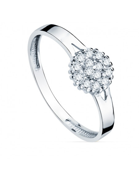 18K SORTIJA ORO BLANCO CUAJO CON CIRCONITAS 7X7 MM ANCHO CUERPO 2.5 MM