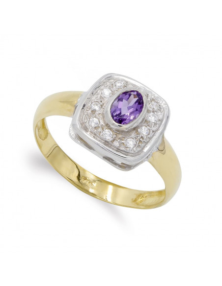 18K SORTIJA ORO BICOLOR AMATISTA Y CIRCONITAS
