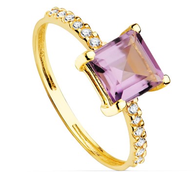 18K SORTIJA ORO AMARILLO CIRCONITAS Y AMATISTA 6X6 MM ANCHO CUERPO 1.5 MM