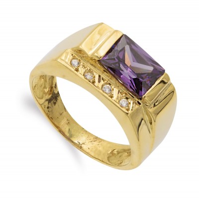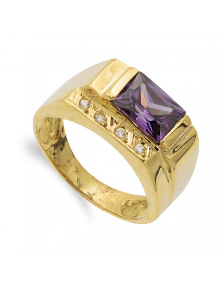18K SORTIJA ORO AMARILLO AMATISTA 8X6 MM Y CIRCONITAS