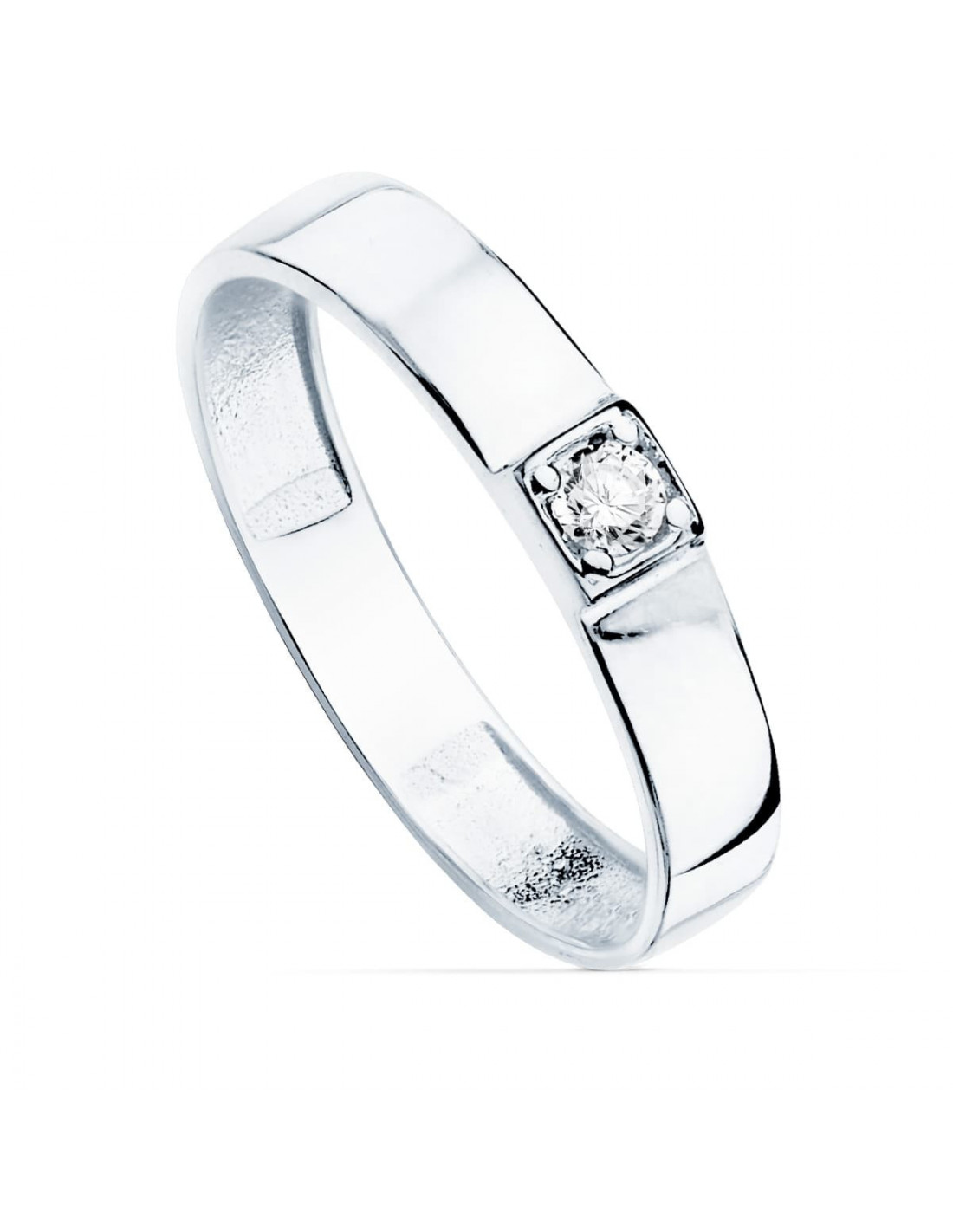 18K SORTIJA ORO BLANCO BRILLO 1 CIRCONITA ANCHO 3.5 MM
