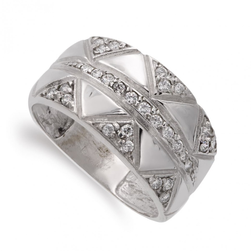 18K SORTIJA ORO BLANCO ROMBOS Y CIRCONITAS 10 MM CUERPO 4 MM