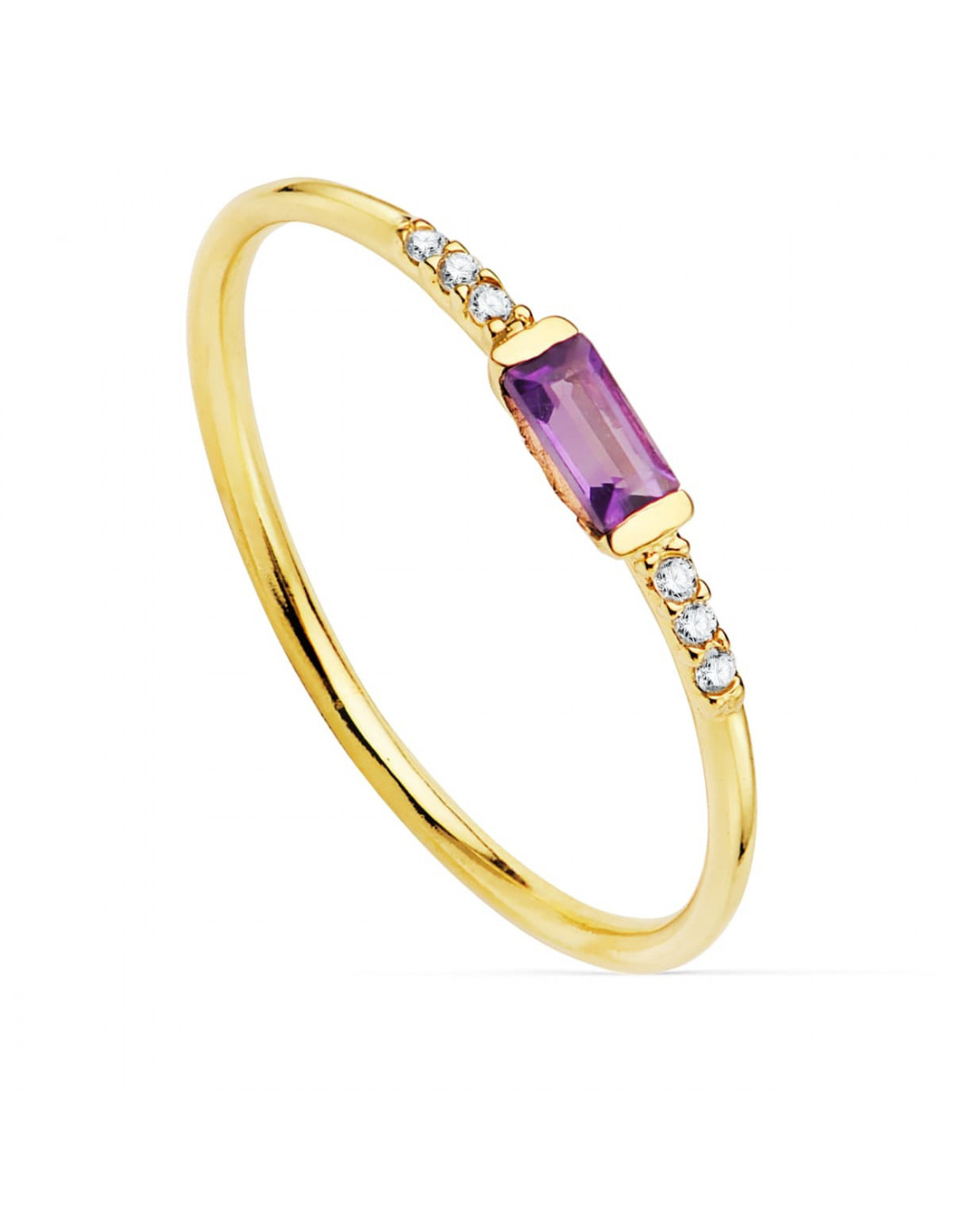 18K SORTIJA ORO AMARILLO DIAMANTES 0,030 QTES. G-VS2 AMATISTA 4X2MM.CUERPO 1MM
