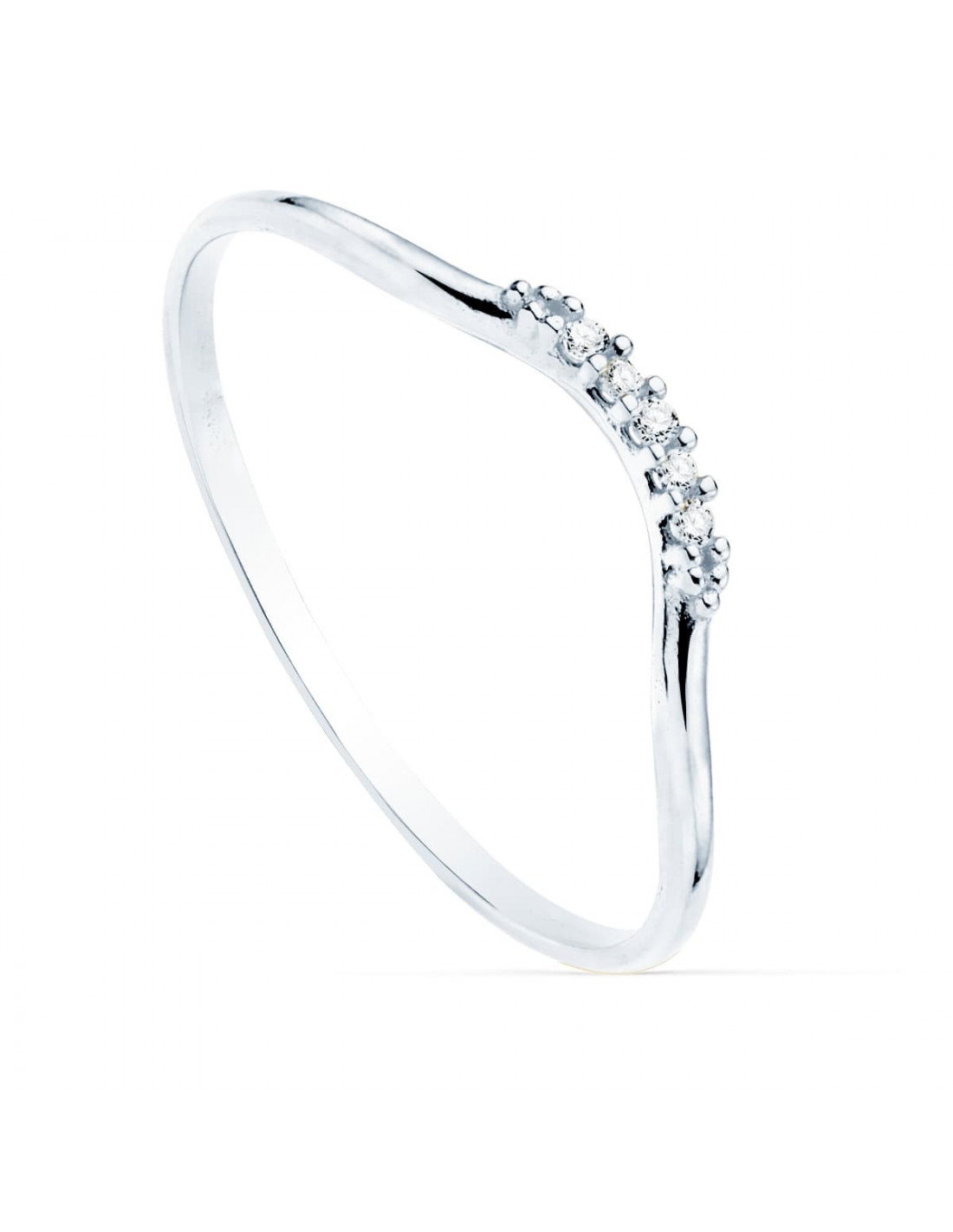 18K SORTIJA ORO BLANCO 5 DIAMANTES 0,025 QTES. G-VS2. CUERPO REDONDO 1 MM