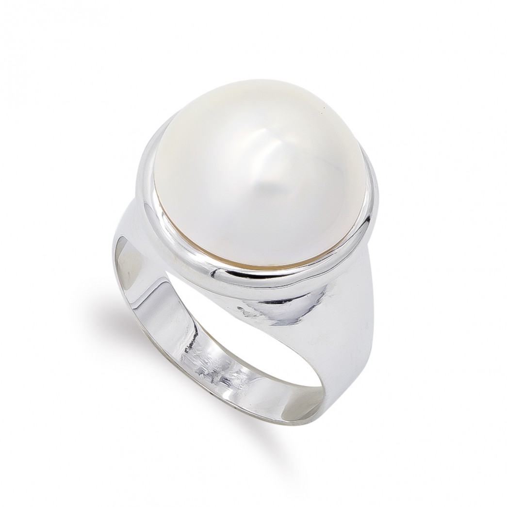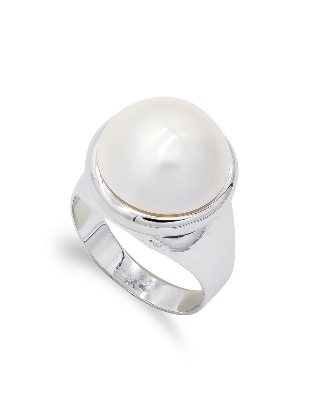 18K SORTIJA ORO BLANCO Y PERLA JAPONESA CON CERCO LISO 14 A 16 MM