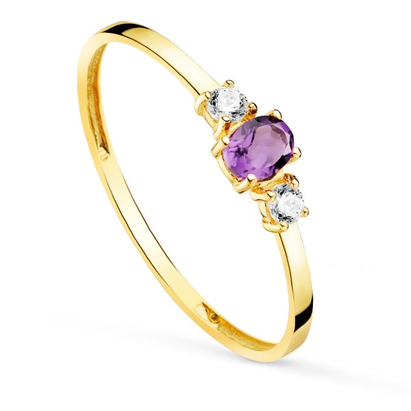 18K SORTIJA ORO AMARILLO PIEDRA AMATISTA 4X3 MM Y CIRCONITAS ANCHO 1 MM