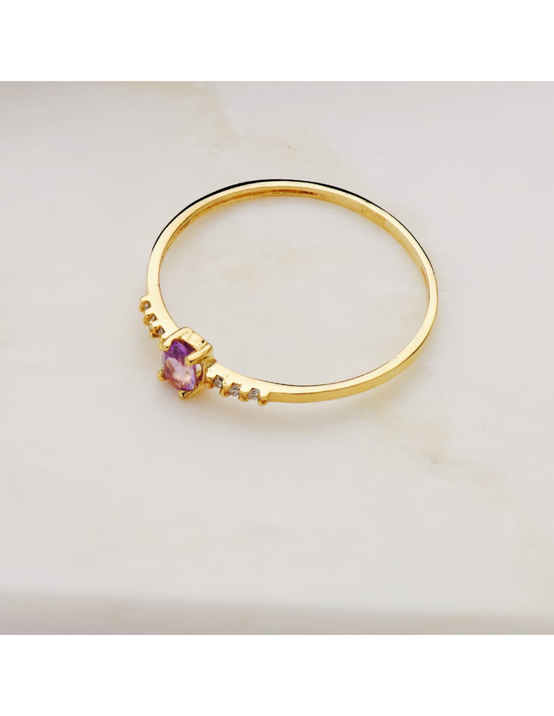 18K SORTIJA DIAMANTES 0.030 QT+ OVAL AMATISTA NATURAL 4X3 MM CUERPO 1.30 MM