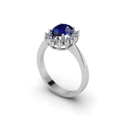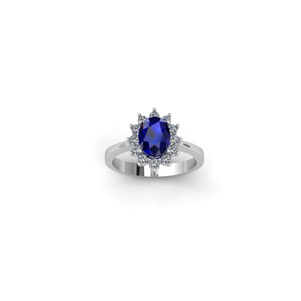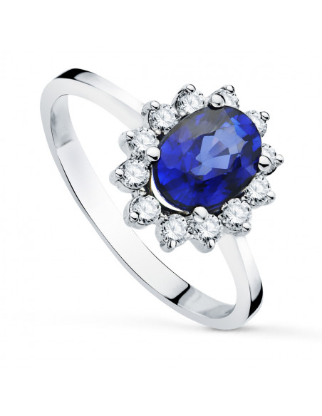 18K SORTIJA ORO BLANCO CUAJO CON DIAMANTES 0.42 QTS. ZAFIRO 8X6 MM 1.63 QTS.