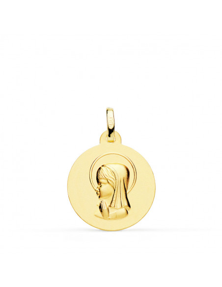 18K MEDALLA ORO AMARILLO VIRGEN NIÑA LISA 18 MM