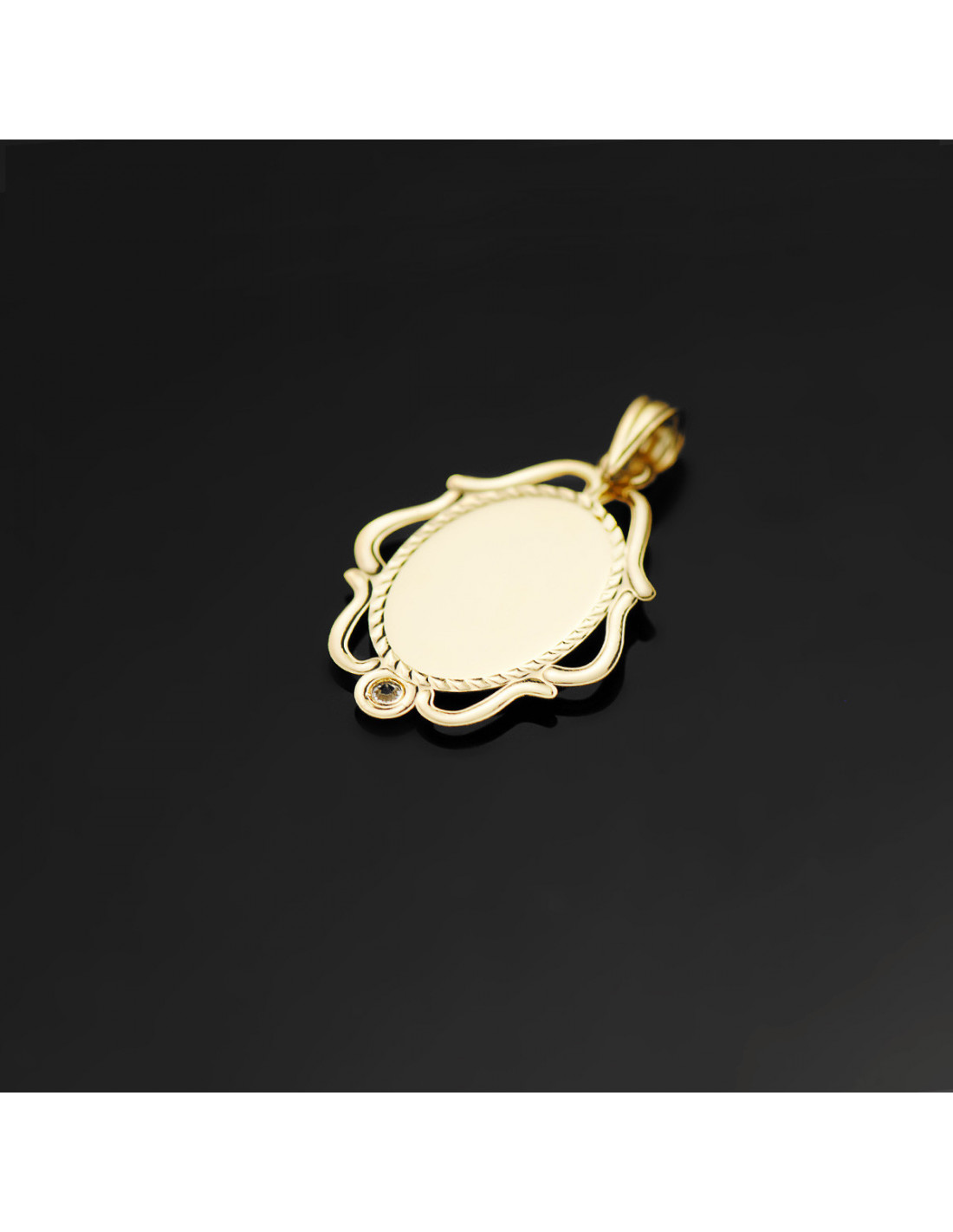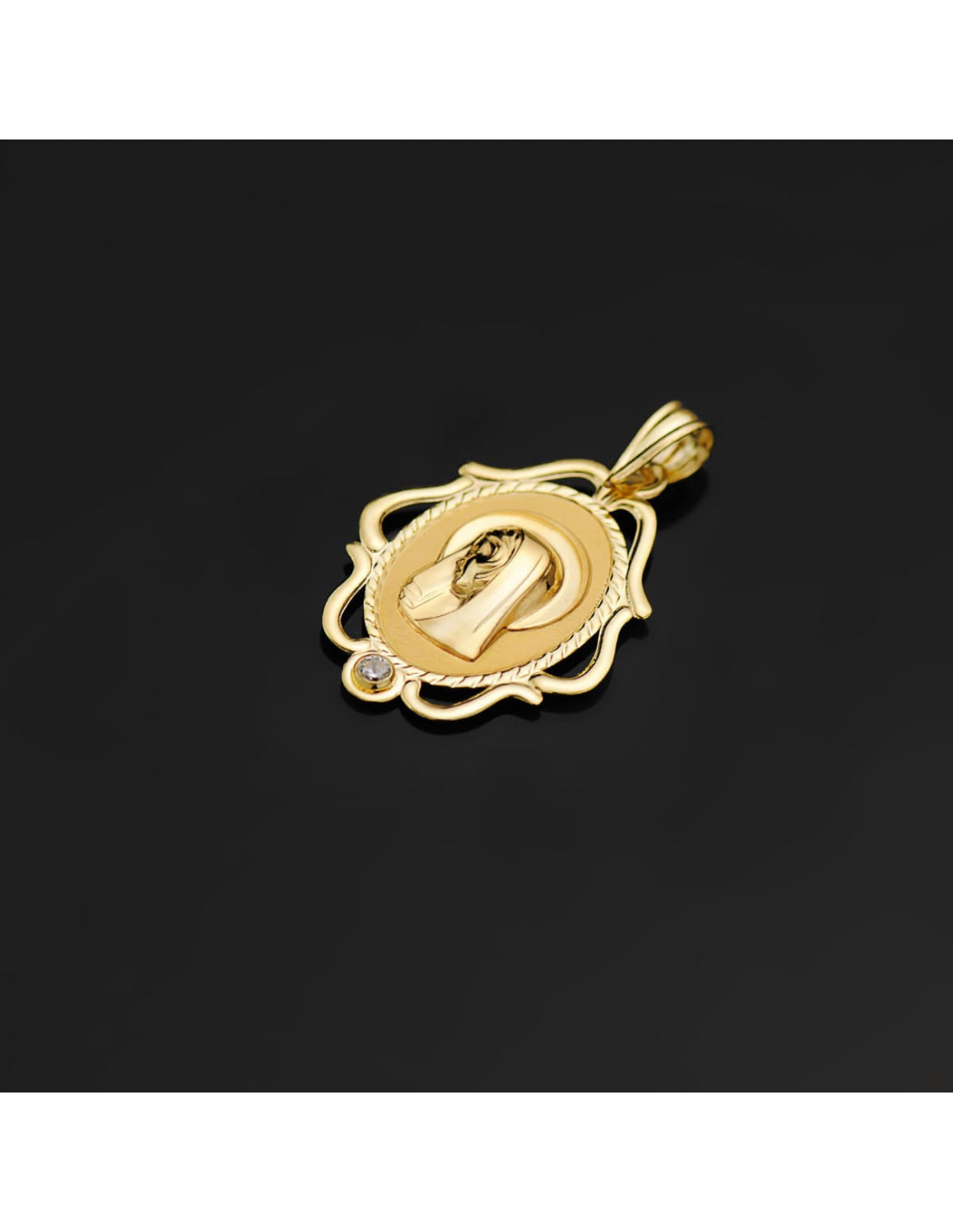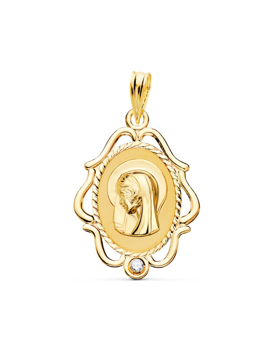 18K MEDALLA VIRGEN NIÑA CERCO CALADO BRILLO CON CIRCONITA 24X17 MM
