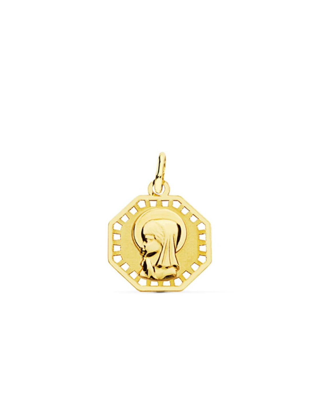 18K MEDALLA VIRGEN NIÑA CALADA 16X14 MM