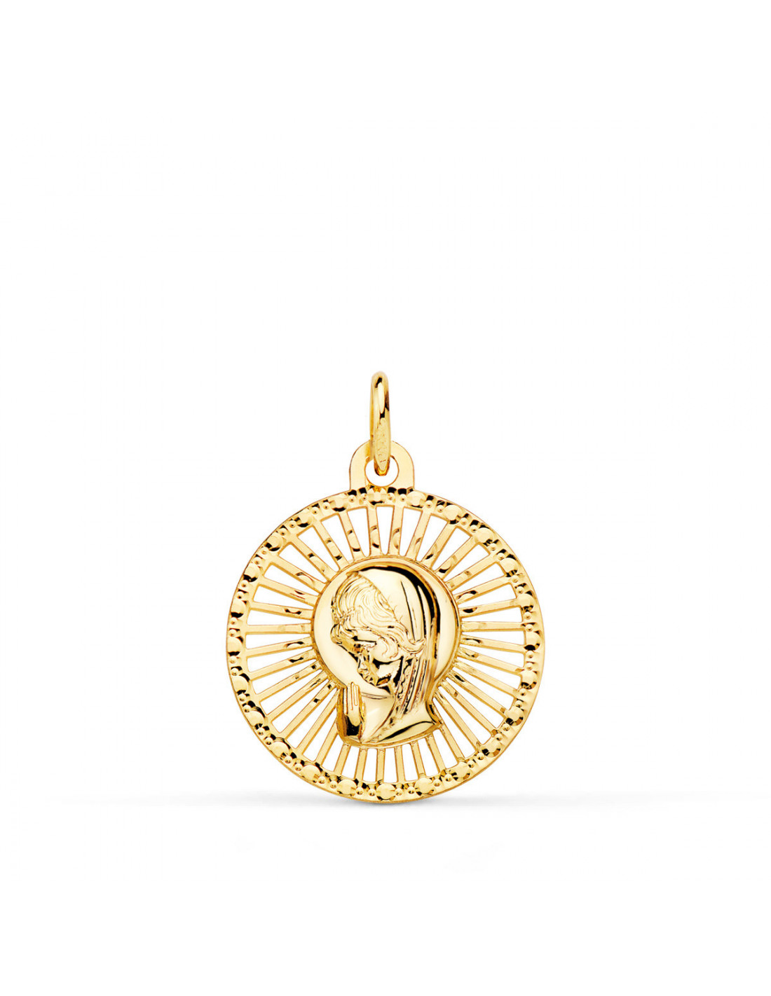 18K MEDALLA VIRGEN NIÑA CERCO CALADO 20X18 MM