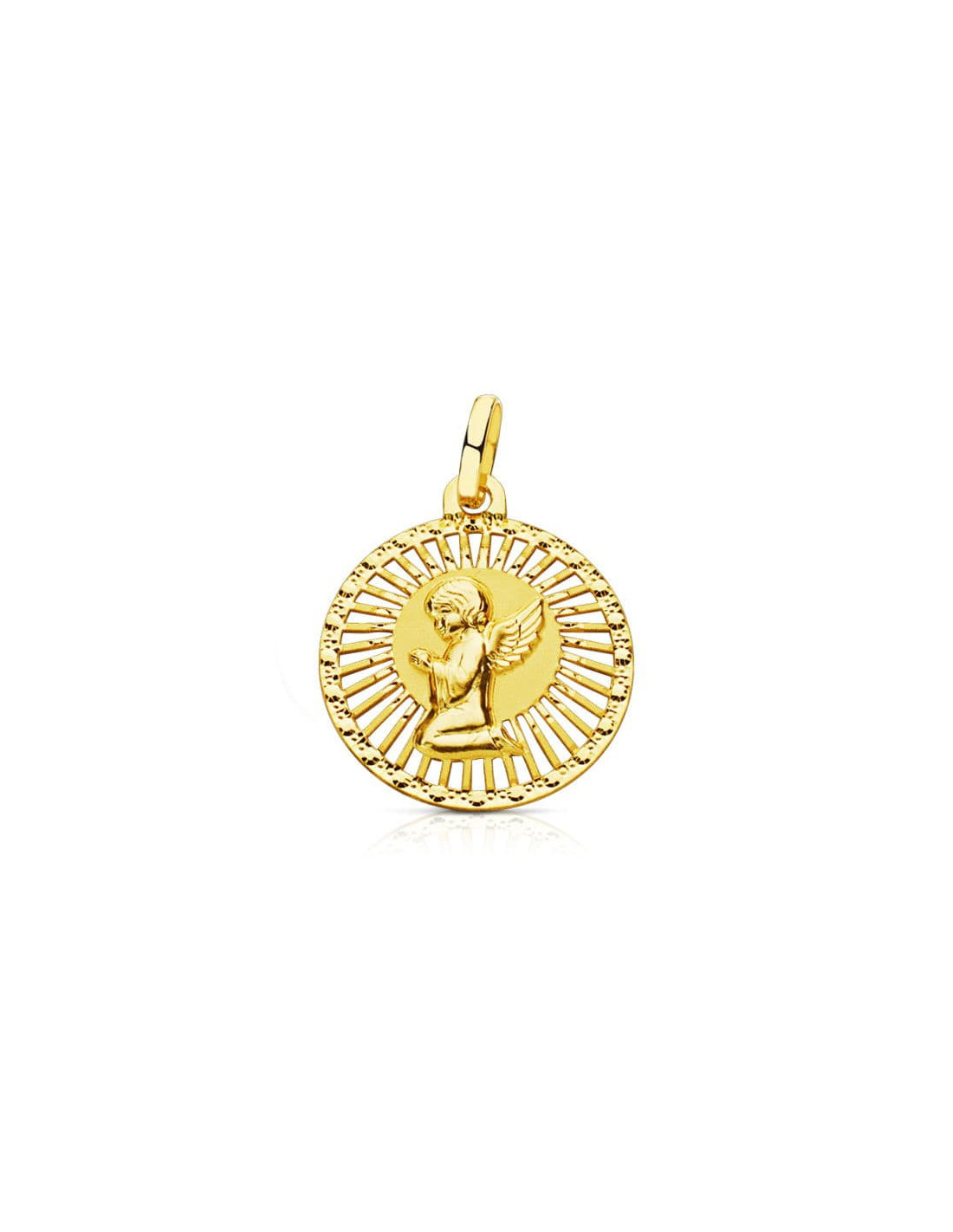 18K MEDALLA ANGEL CERCO CALADO 21X19 MM