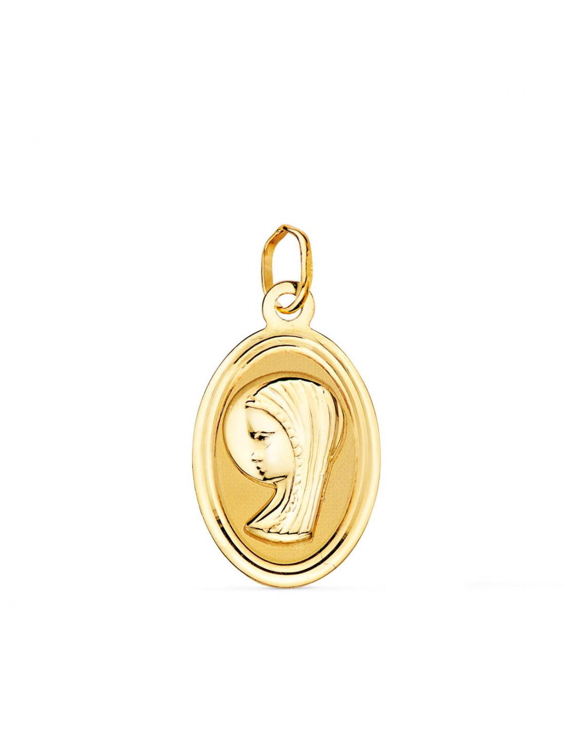 18K MEDALLA ORO AMARILLO OVAL VIRGEN NIÑA CON BORDE BISELADO. 19X12 MM