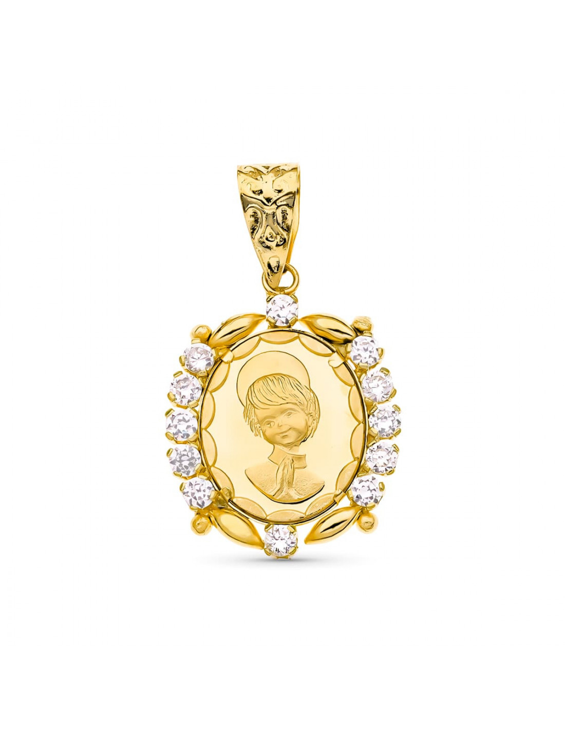 18K MEDALLA ORO AMARILLO COMUNION CIRCONITAS 19X15 MM