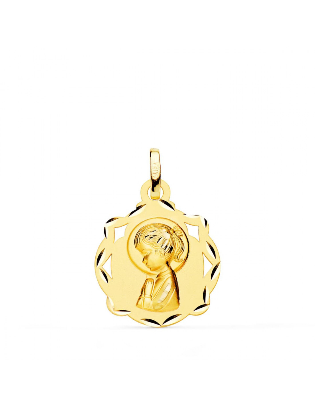 18K MEDALLA ORO AMARILLO CAPILLA VIRGEN NIÑA PERFIL MATIZADA 17X14 MM