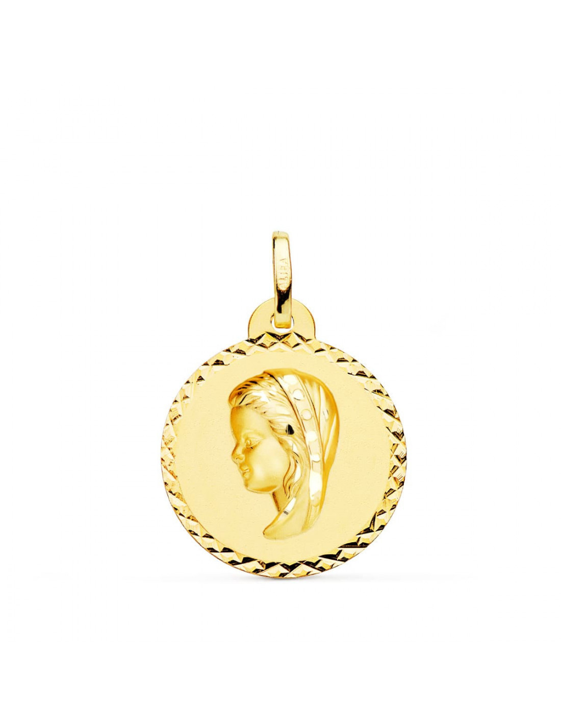 18K MEDALLA ORO AMARILLO VIRGEN NIÑA TALLA CRUZADA 20 MM