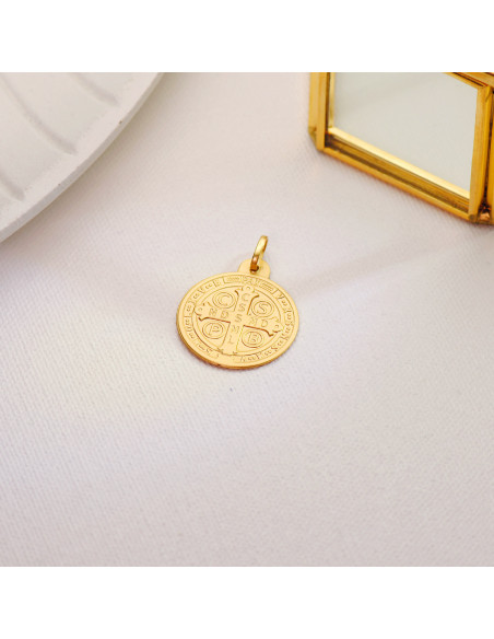 18K ESCAPULARIO MEDALLA SAN BENITO MONJE 24 MM