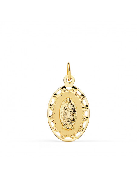 18K MEDALLA ORO AMARILLO VIRGEN DE GUADALUPE CERCO CALADO 23X14 MM