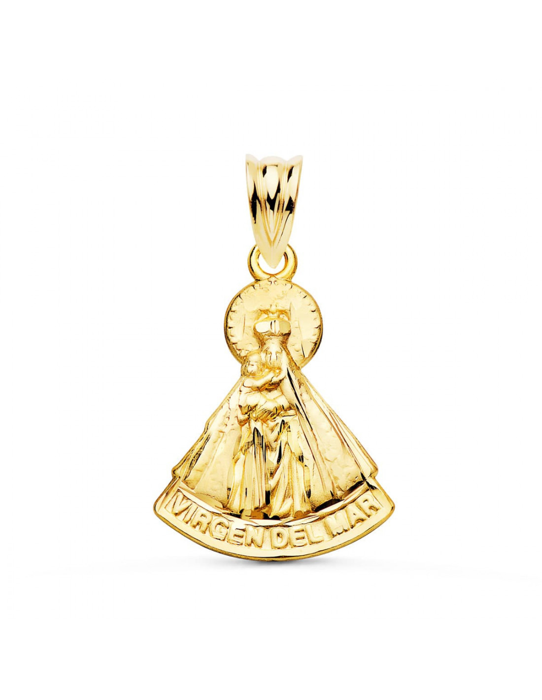 18K MEDALLA ORO AMARILLO VIRGEN DEL MAR SILUETA TALLADA 20X17 MM