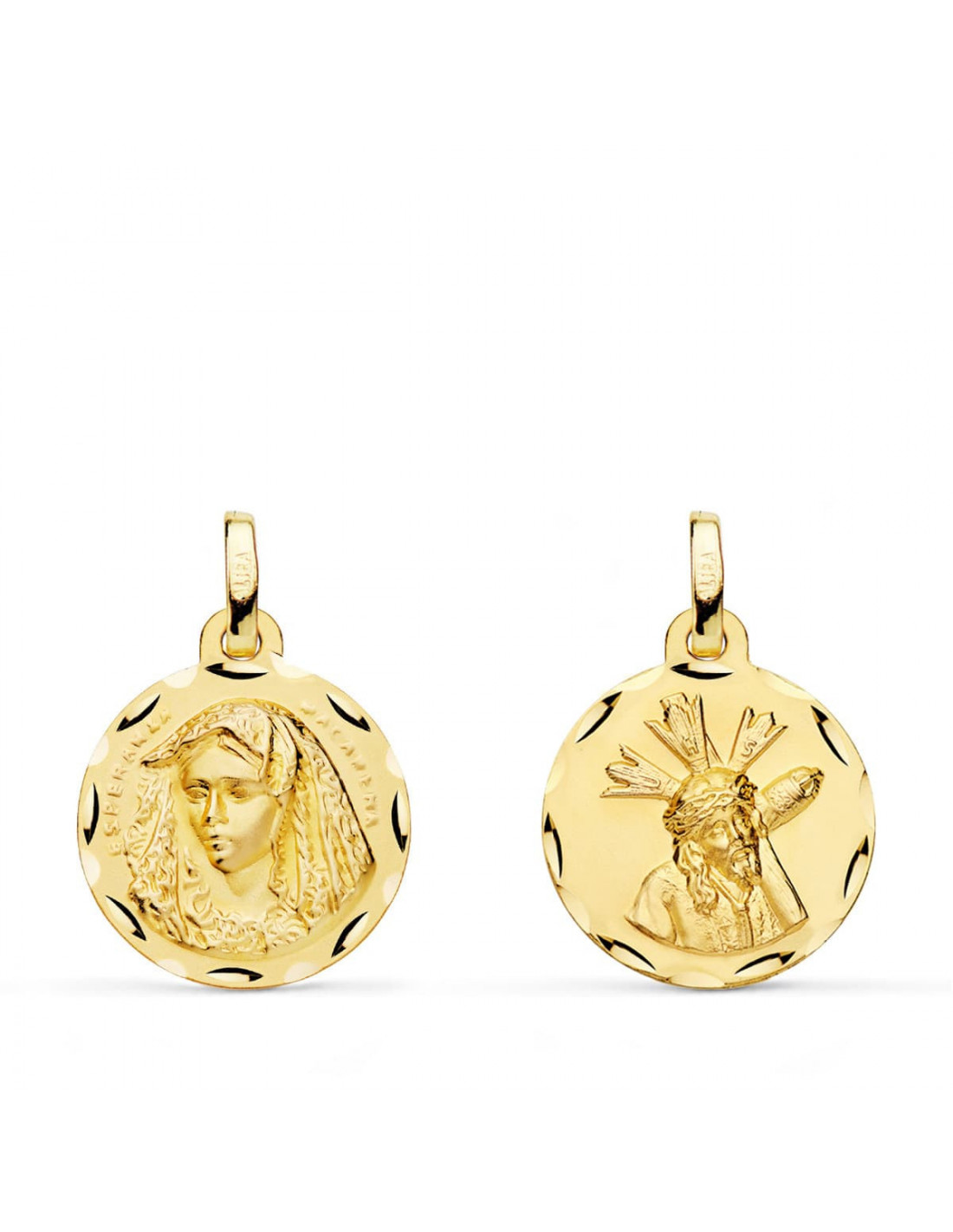 18K ESCAPULARIO VIRGEN MACARENA Y GRAN PODER TALLADA 16 MM