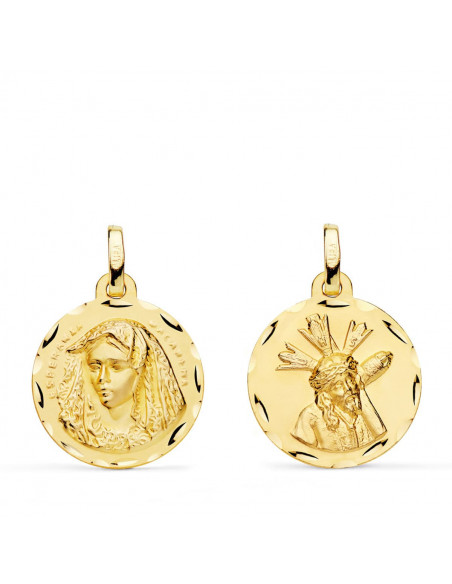 18K ESCAPULARIO VIRGEN MACARENA Y GRAN PODER TALLADA 20 MM