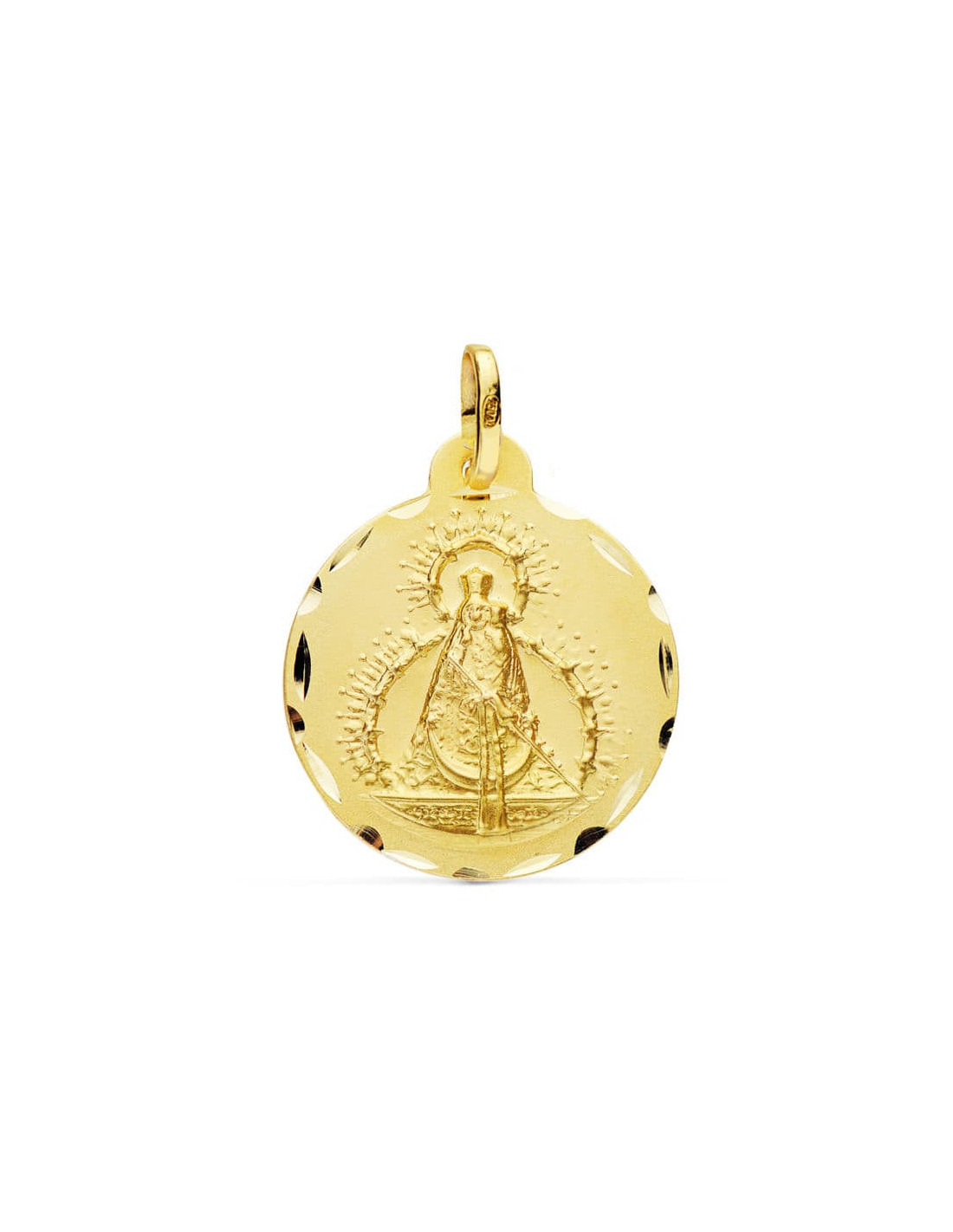 18K MEDALLA ORO AMARILLO VIRGEN DE LA CABEZA TALLADA 22 MM