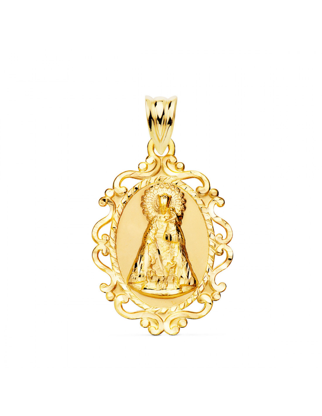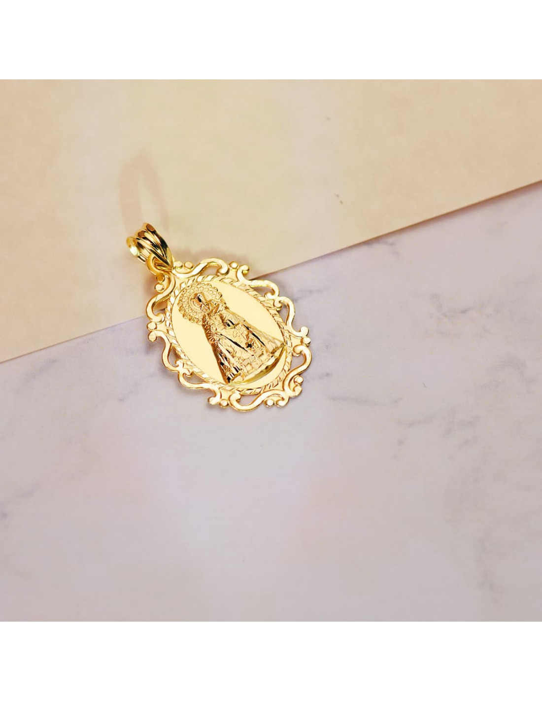 18K MEDALLA ORO AMARILLO VIRGEN DE LOS DESAMPARADOS CERCO 31X21 MM