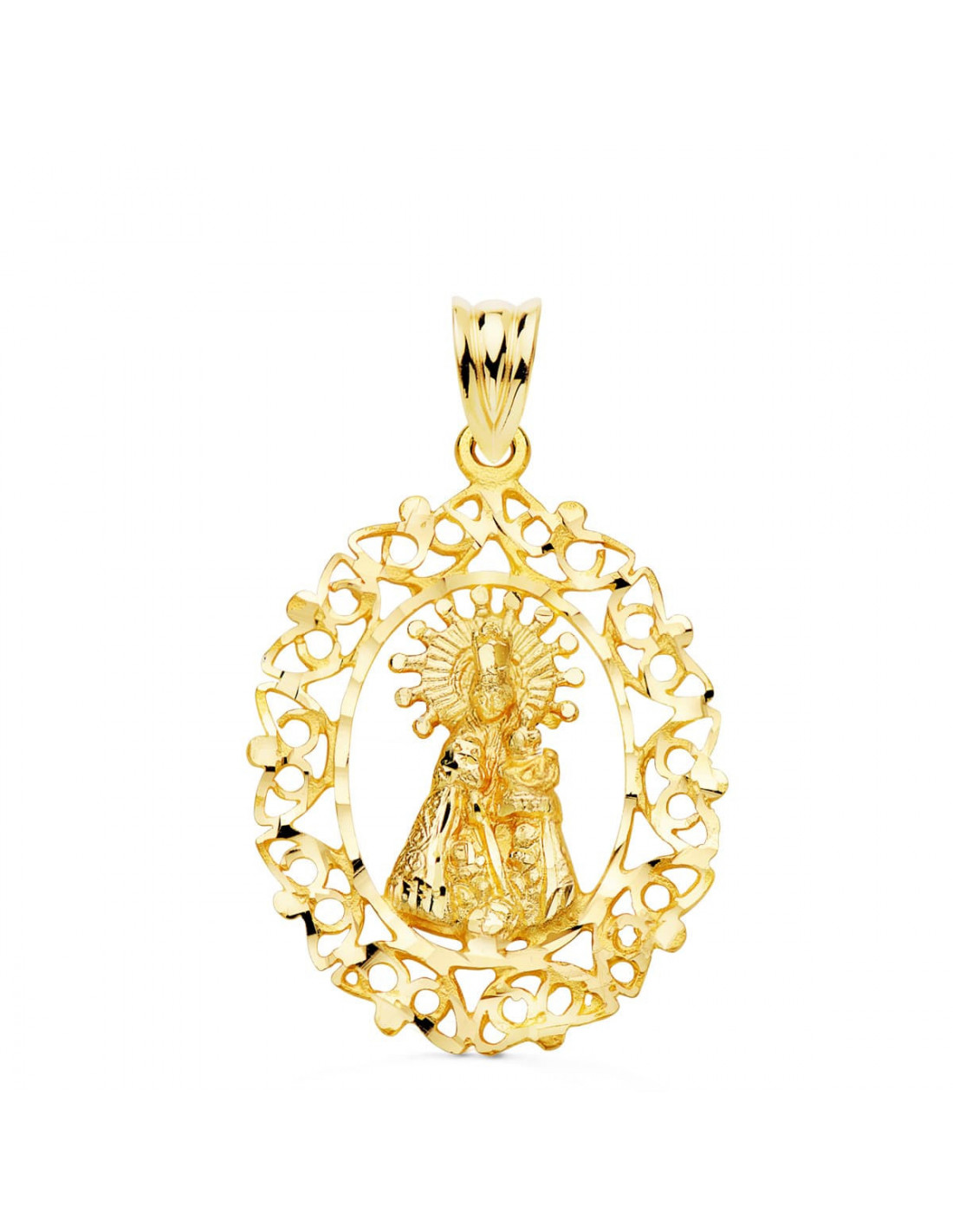 18K MEDALLA ORO AMARILLO VIRGEN DESAMPARADOS CERCO CALADO 28X21 MM