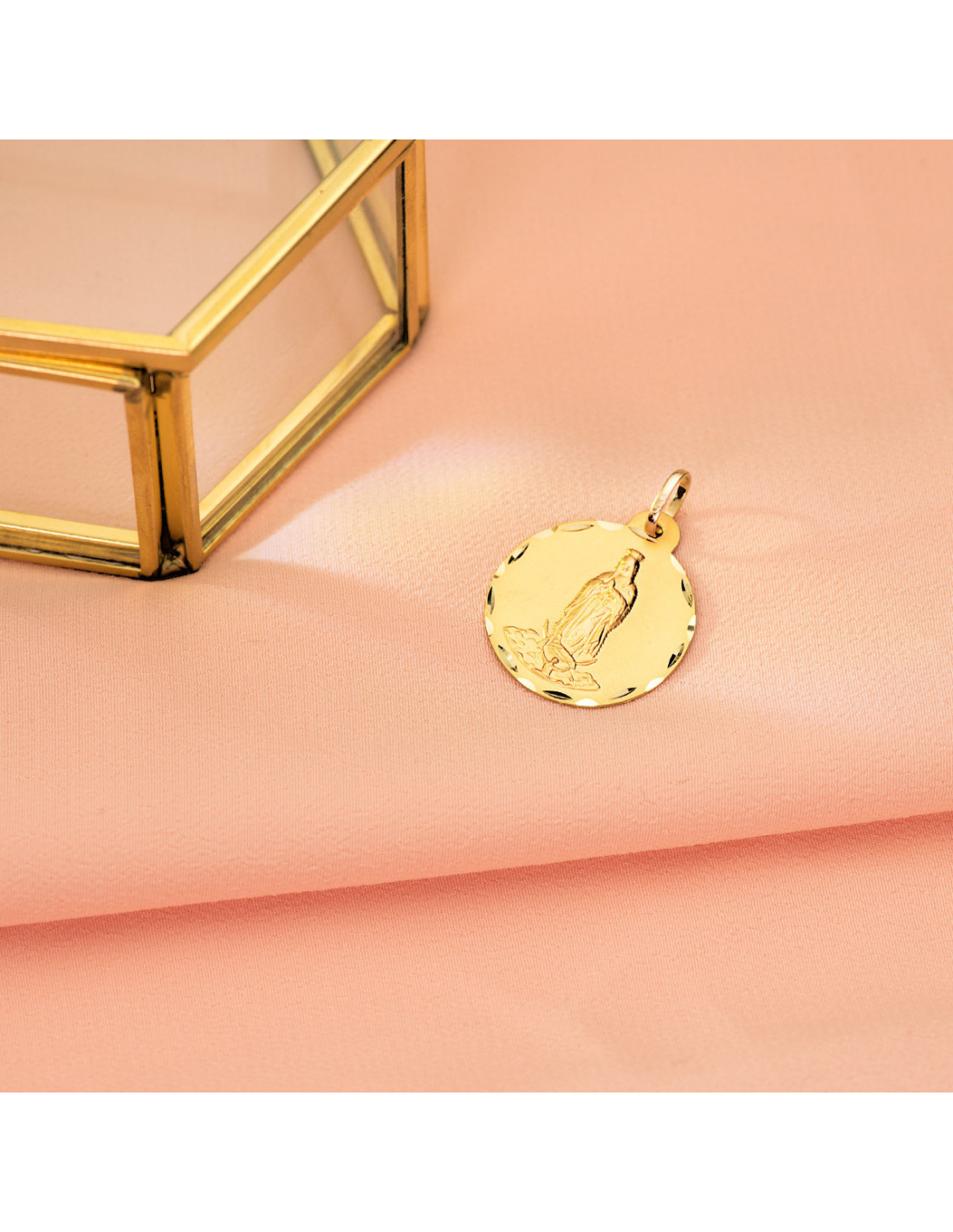 18K MEDALLA ORO AMARILLO VIRGEN DE GUADALUPE TALLADA 22 MM