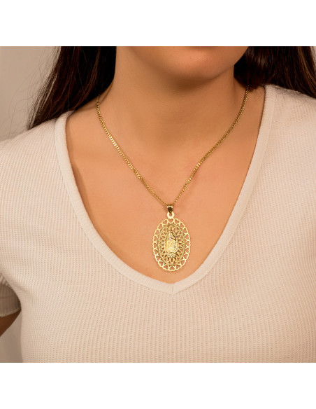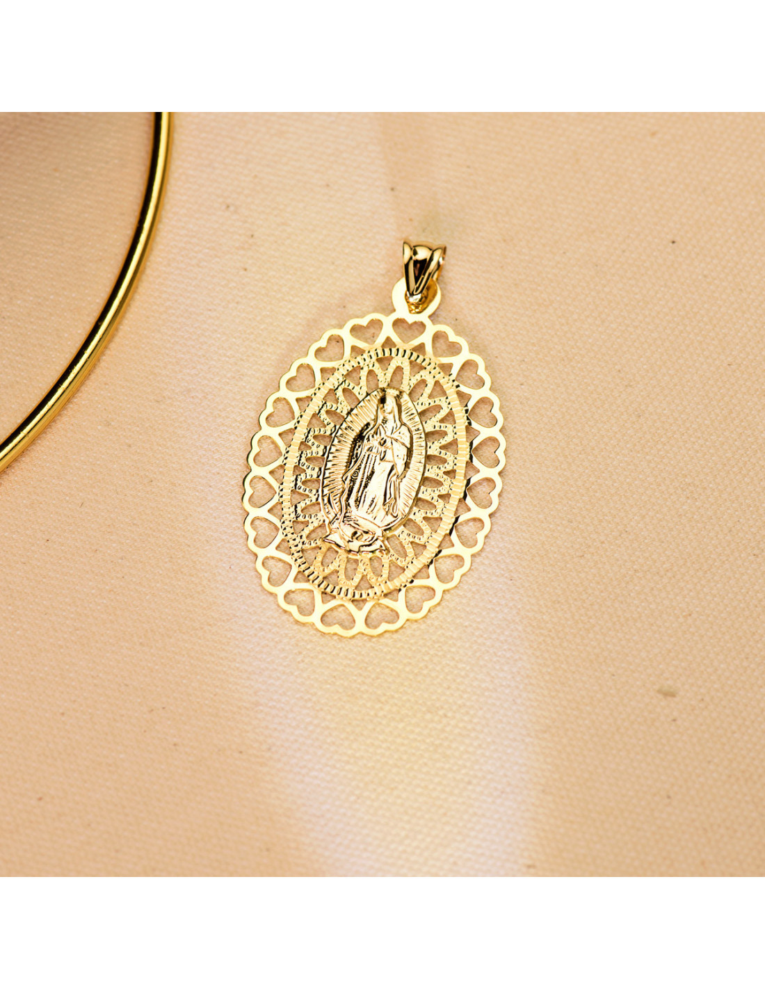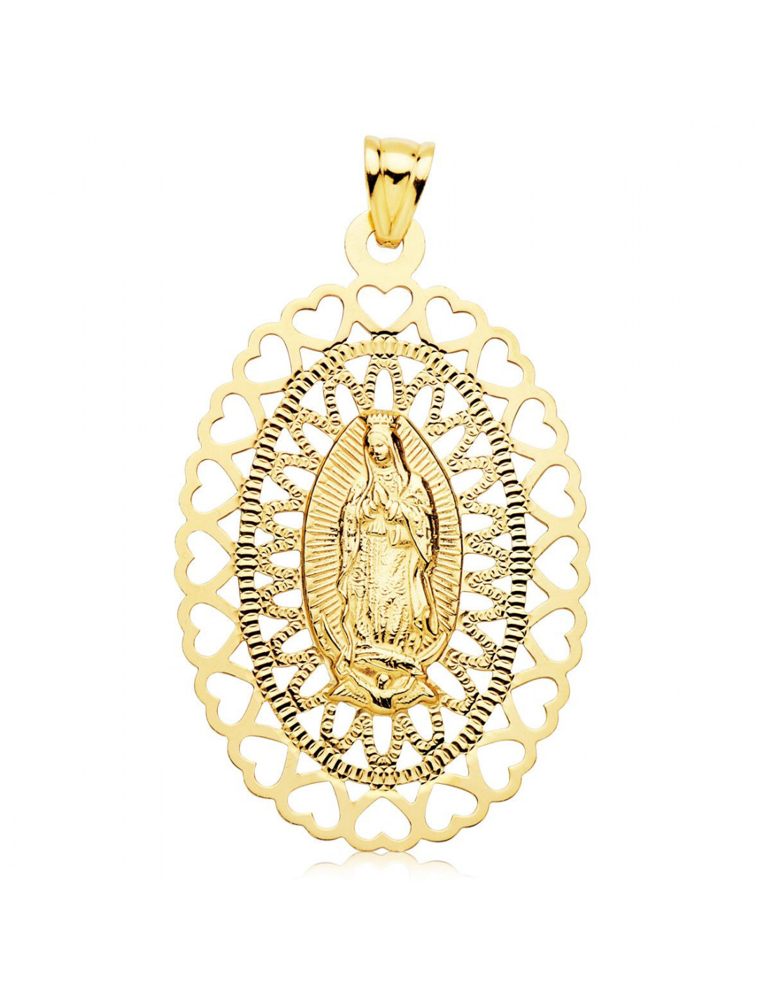 18K MEDALLA ORO AMARILLO VIRGEN DE GUADALUPE OVAL 50X35 MM CERCO CORAZONES