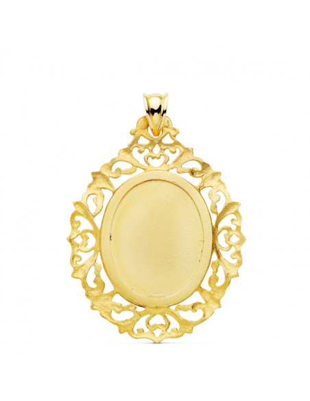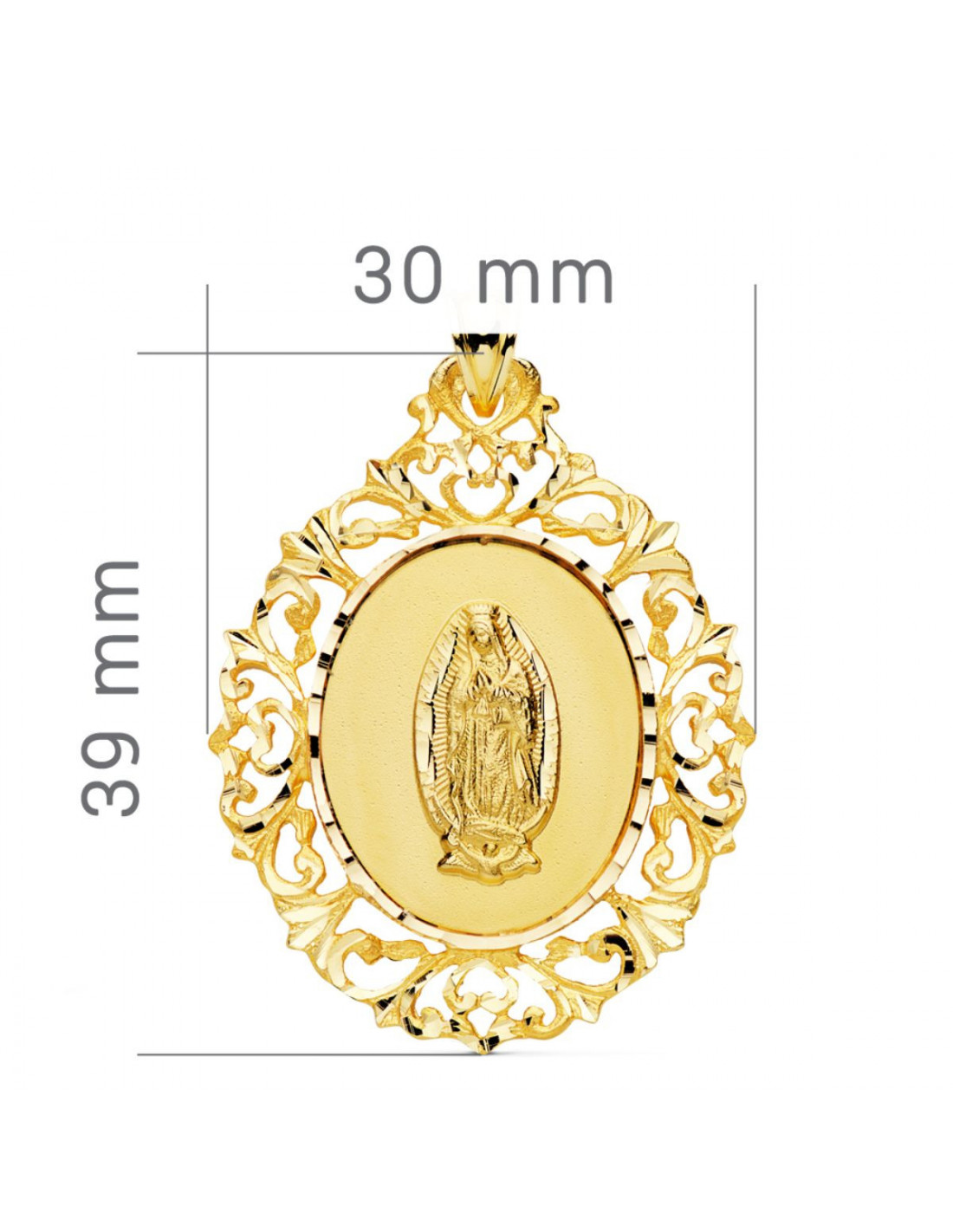 18K MEDALLA ORO AMARILLO VIRGEN GUADALUPE CERCO FILIGRANA 39X30 MM